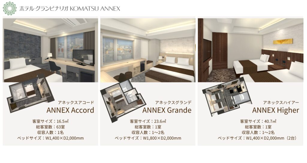 ホテルグランビナリオKOMATSU別館「ANNEX-アネックス」が、オープンいたしました。